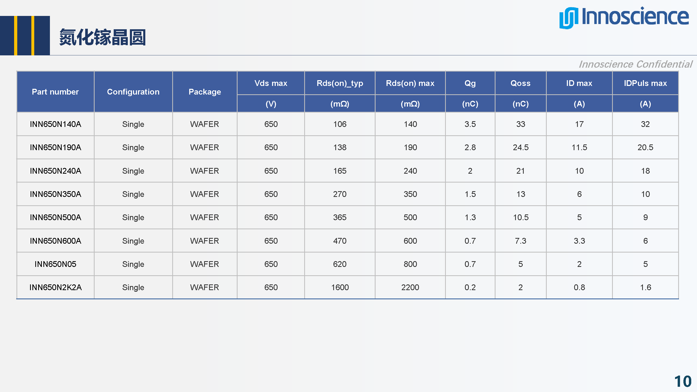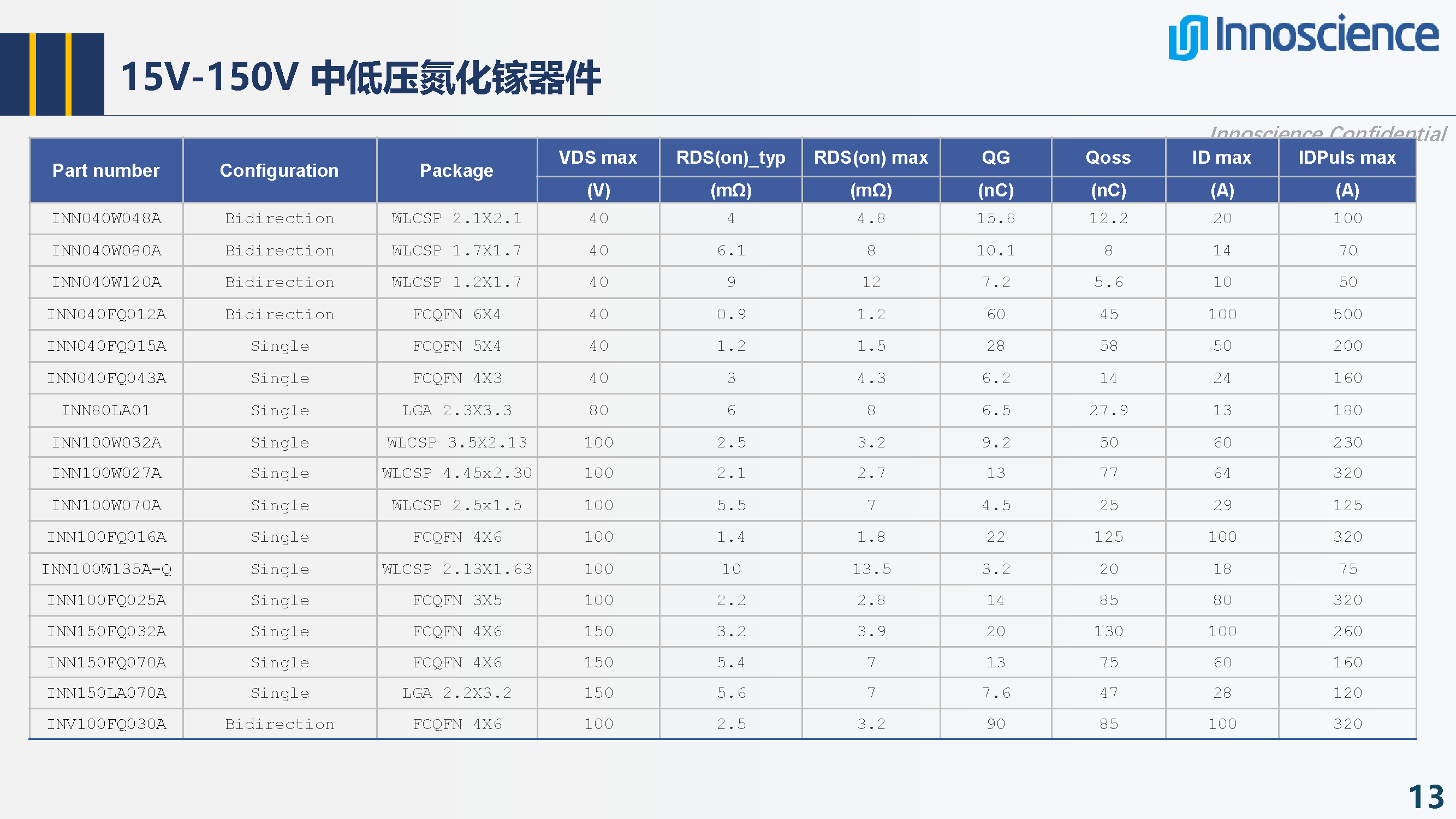 英諾賽科產(chǎn)品線